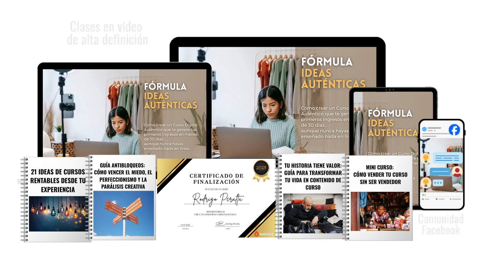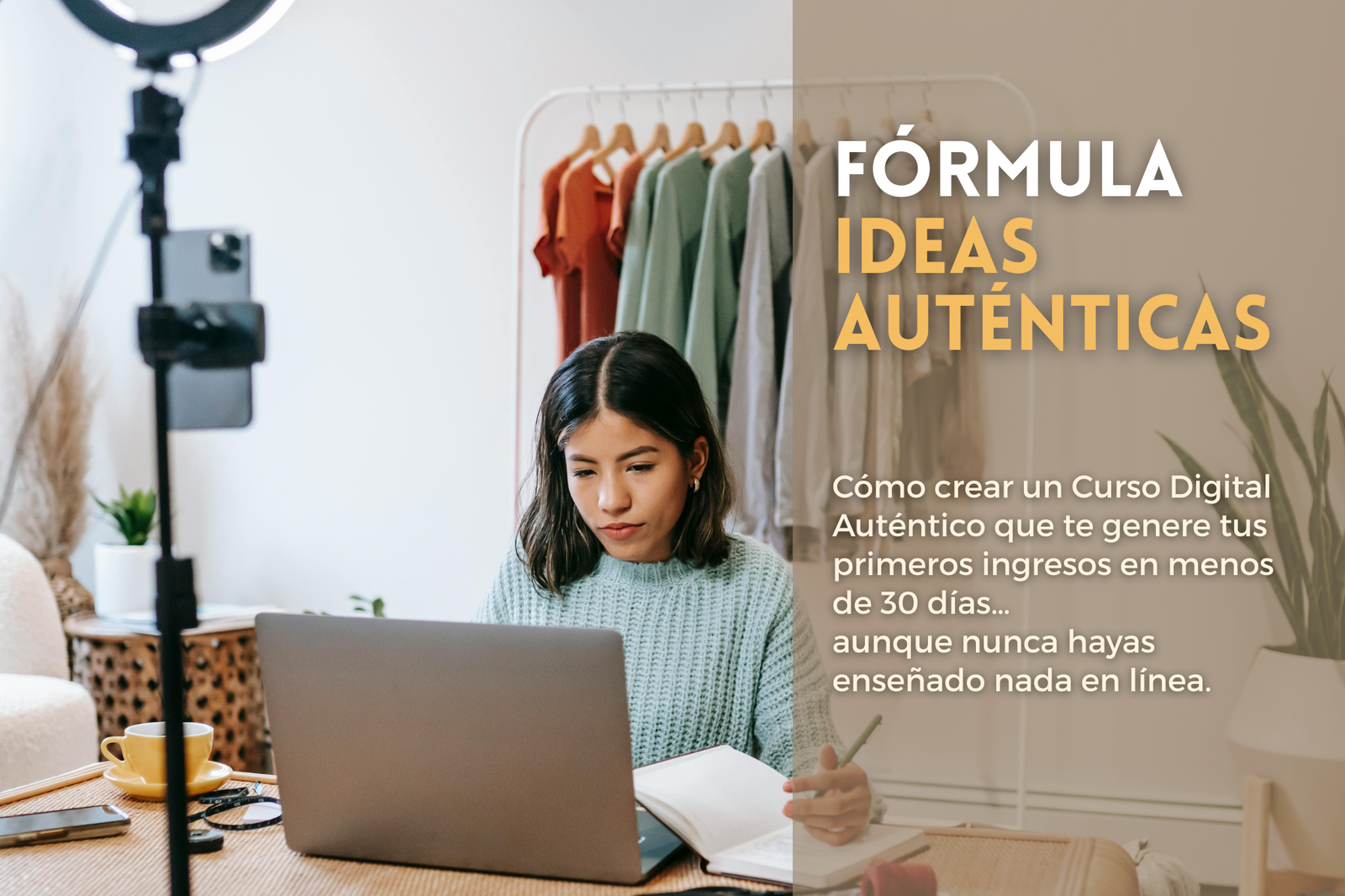 Con mi Fórmula Ideas Auténticas descubrirás cómo convertir tu experiencia en un curso irresistible, sin gastar en tecnología complicada ni pasar meses planeando. Solo pasos simples, resultados rápidos y ventas reales.